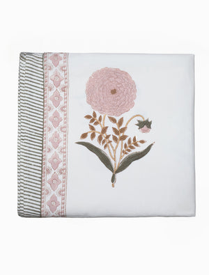 Enjoy your dining moments with the Camellia Grove Tablecloth 150cm x 320cm. Crafted from 100% cotton, this elegant tablecloth features a lush floral design in shades of soft green and blush pink, hand block-printed to bring an artisanal, garden-inspired charm to your setting.