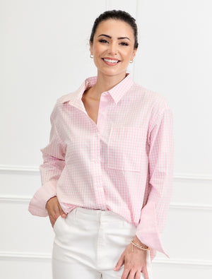 The Charlie Gingham Shirt Pink is one of those pieces you’ll keep reaching for. Made from 100% cotton, this pink shirt is soft, breathable and feels just as good as it looks. The lightweight fabric offers easy, all-day comfort while still holding a clean, structured shape.
