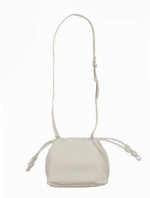 Introducing the Ernie Crossbody Bag in Ecru! A versatile red drawstring pouch that offers a feminine touch while holding all your essentials. Change the shape instantly by pulling in the drawstrings to create a gathered, bucket style effect.