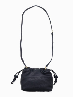 Introducing the Ernie Crossbody Bag Navy! A versatile navy drawstring pouch that offers a feminine touch while holding all your essentials. Change the shape instantly by pulling in the drawstrings to create a gathered, bucket style effect.