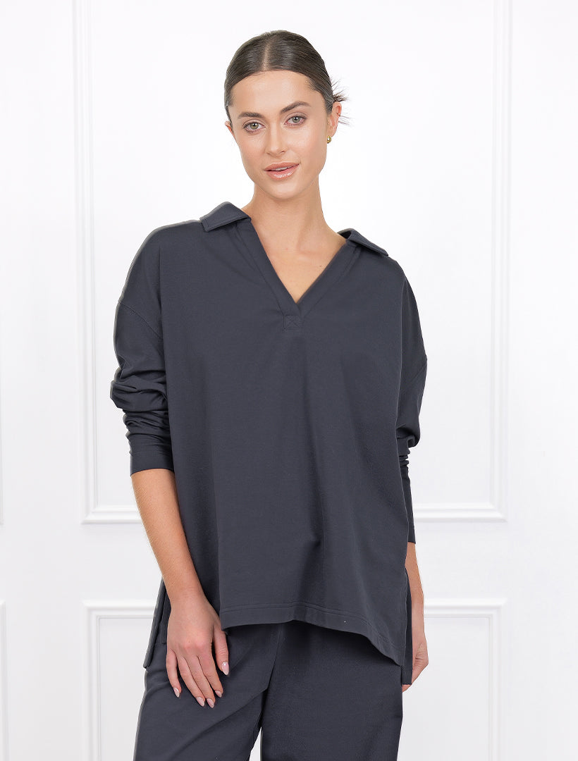 Ideal for casual days, work-from-home looks or weekend adventures, this versatile navy jersey blends comfort with timeless style. Pair it with jeans, skirts or trousers for an easy everyday outfit that never goes out of fashion.