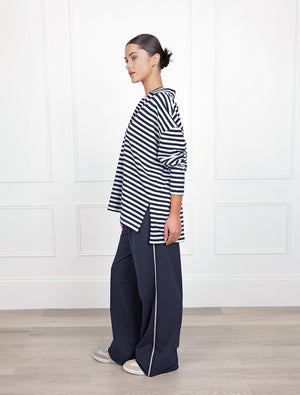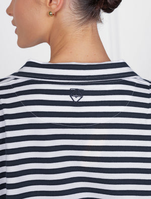 The Itinerary Long Sleeve Jersey Navy White is a versatile wardrobe essential, crafted from a high quality cotton blend for soft comfort and breathability. Featuring a classic navy and white stripe, this jersey top combines timeless style with everyday practicality. Its flattering fit and long sleeves make it perfect for layering or wearing on its own from season to season.