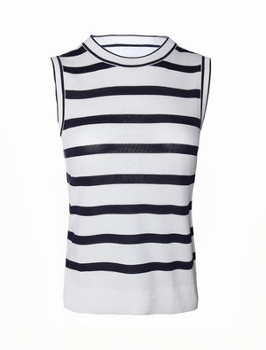The Layla Knit Tank Navy White is your fresh and flattering essential for effortless summer dressing. Made from a soft viscose and nylon blend, this navy knit tank offers a lightweight, stretchy feel that hugs in all the right places. The navy and white stripe gives a timeless coastal look, while the scoop neckline and slim fit create a sleek, modern silhouette.