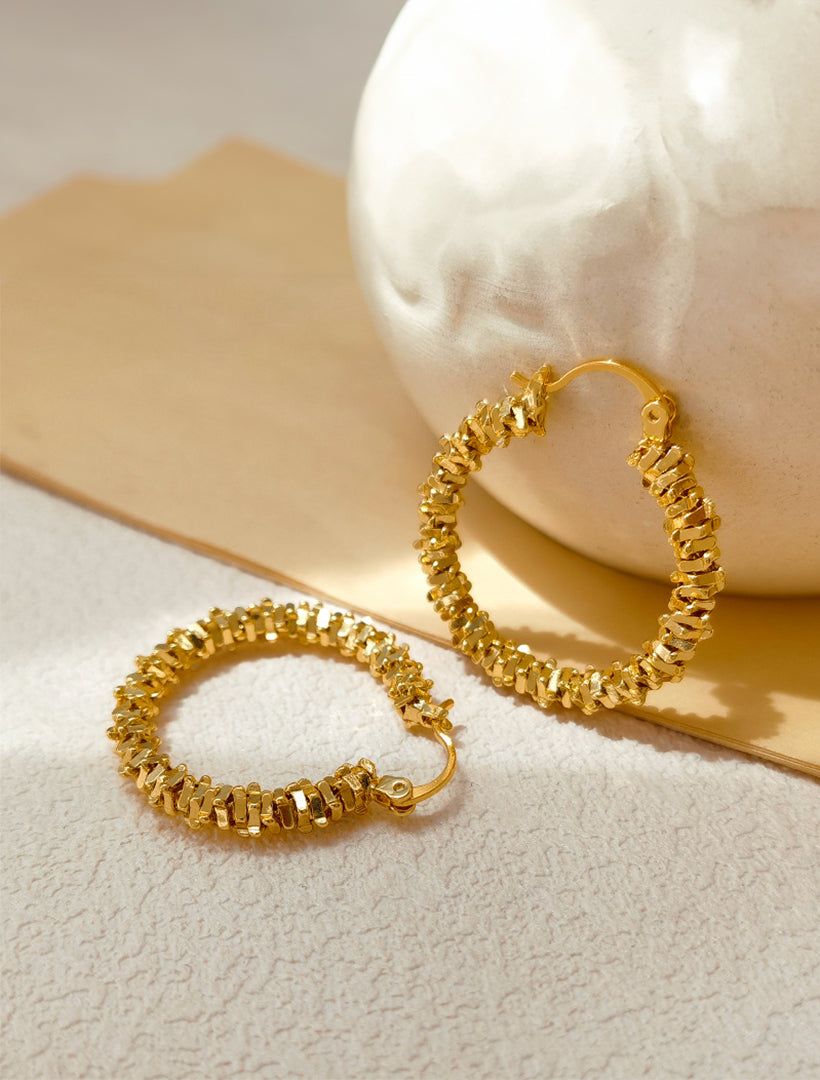Introducing the Margot Hoops Clip Ons Gold, a statement-making addition to your jewellery collection. These striking clip-ons feature a unique textured design with a radiant, polished gold-plated finish, creating an eye-catching and sophisticated look. Their chunky yet comfortable silhouette adds a touch of modern glamour to any outfit.