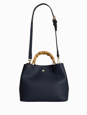 The Monroe Bag Navy is a must-have luxury handbag, designed for those who appreciate the perfect balance of elegance and style. Expertly crafted from premium leather, this sophisticated navy bag features distinctive bamboo handles, adding a touch of natural luxury.