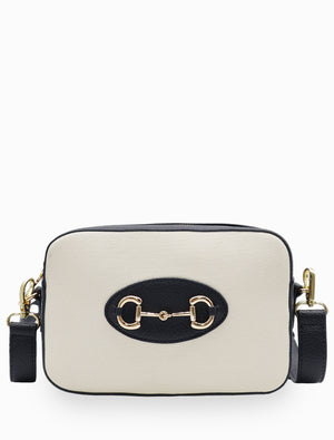 Crafted from premium textured vegan leather with a canvas-look body, it features a standout gold horsebit detail at the centre — a timeless nod to classic equestrian design. Compact yet spacious enough for your daily essentials, it’s the ideal companion for any occasion.
