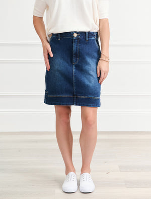Love my new addition denim skirt. Falling just above the knee, this skirt brings a casual but fun feel to my wardrobe. Dress up with dressy top & heels or more cas with tee and sneakers. Very versatile