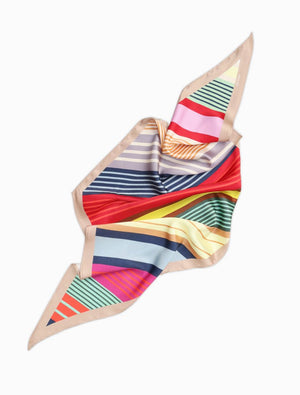 The Trapezoid Scarf Bright Stripes is crafted from a beautifully soft fabric that adds a little luxury to your everyday. It's bold, vibrant stripes, it’s the perfect accessory to brighten up your outfit.