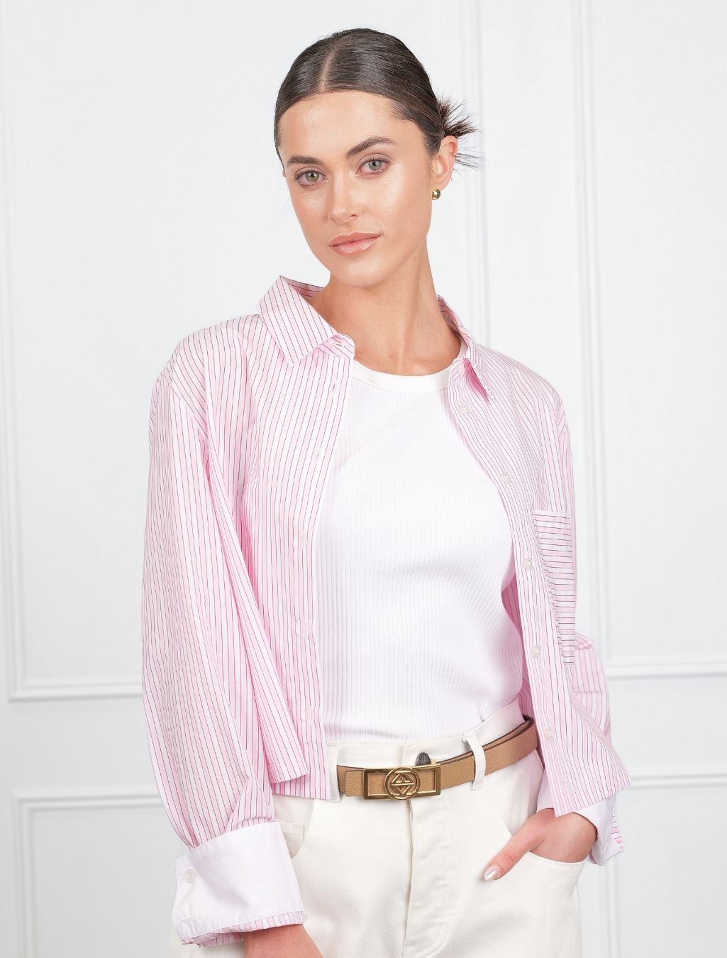 The soft, natural cotton fabric ensures exceptional comfort and breathability, making it an ideal choice for everyday wear during warmer seasons. Pair this versatile top with your favorite denim for a casual yet sophisticated look, or tuck it into a skirt for a more polished ensemble.