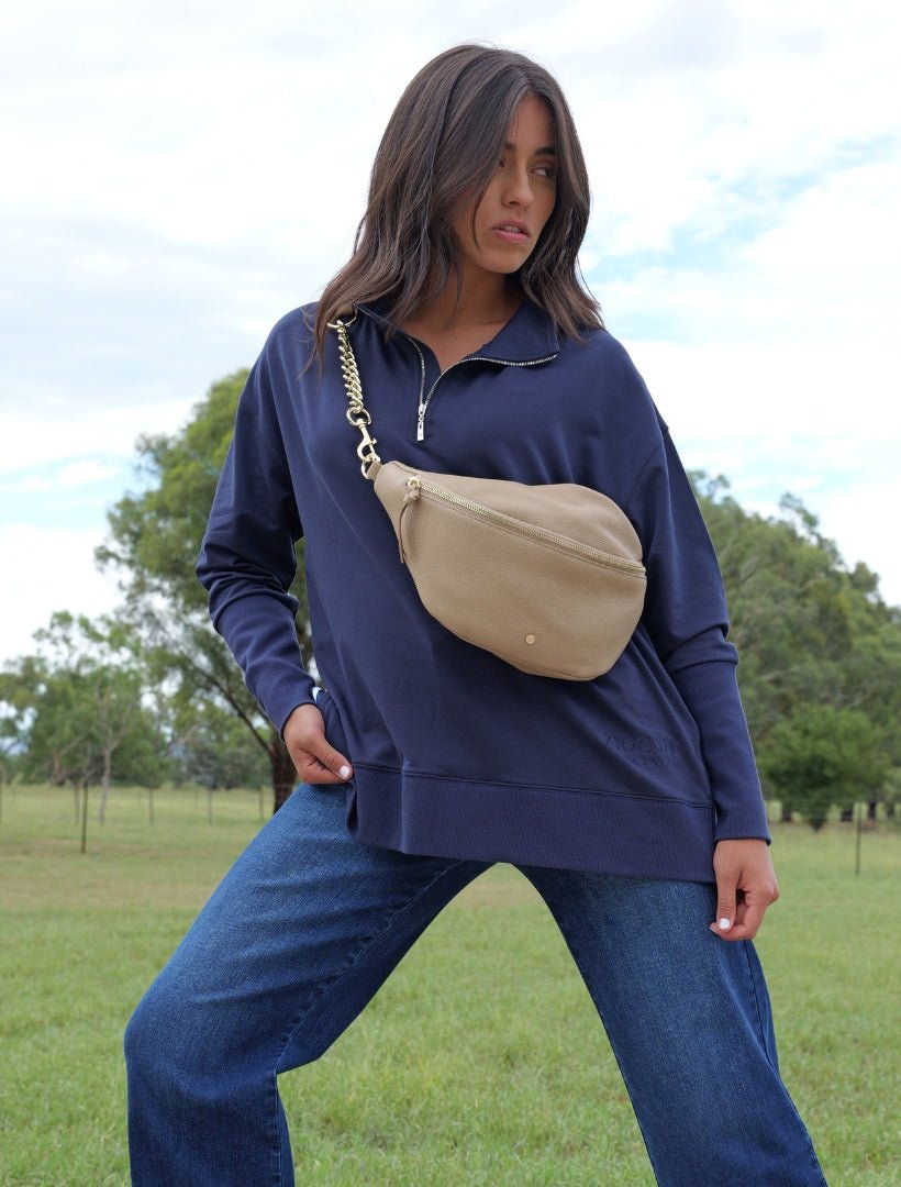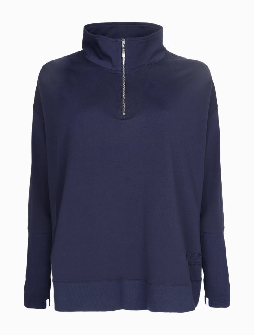 Zjoosh loungewear is starting to take over and the Alysha Zip Through Sweatshirt Navy is no exception. Crafted from pure washed cotton with a super soft feel the Alysha is a classic navy quarter zip sweatshirt. Relaxed and oversized, she is perfect for lounging around or staying warm on the sporting side lines.