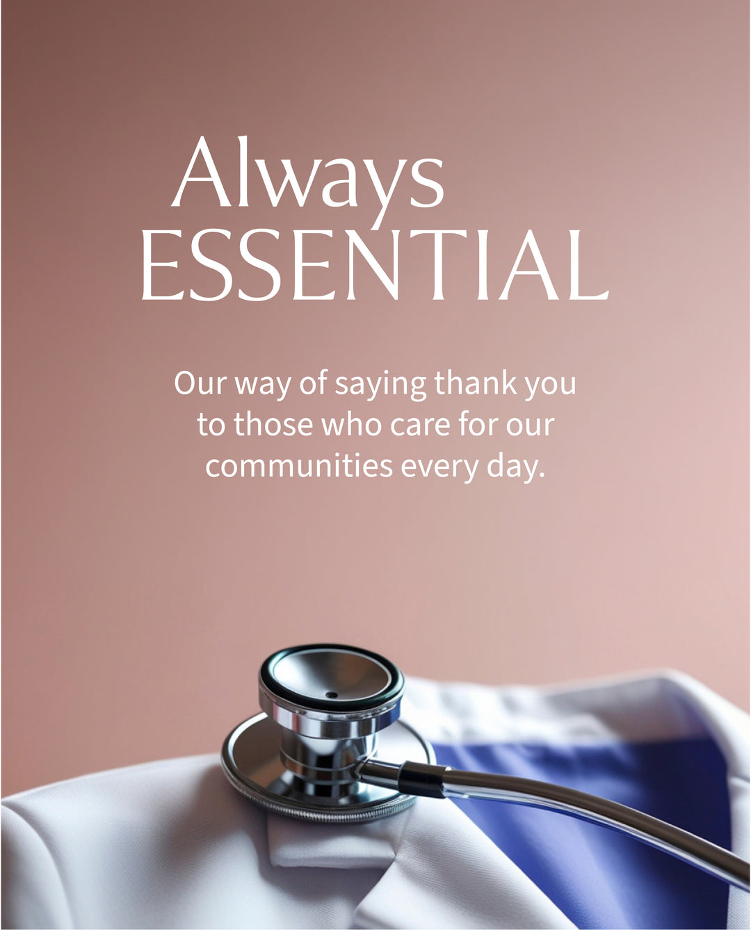 We’re proud to introduce Always ESSENTIAL, our in-store program offering 10% off full-priced items for eligible essential workers. Available to healthcare, emergency services, defence and community support professionals with a valid ID. In-store only at Zjoosh.