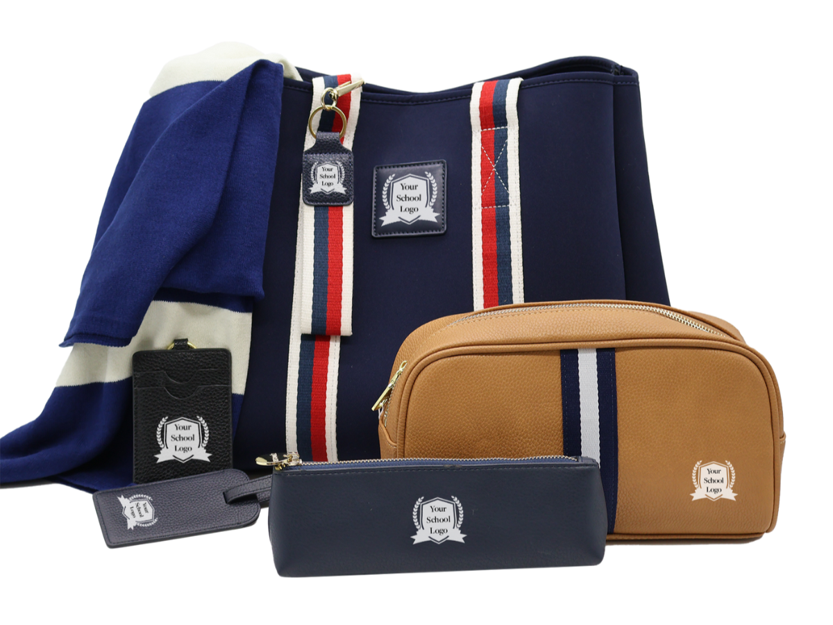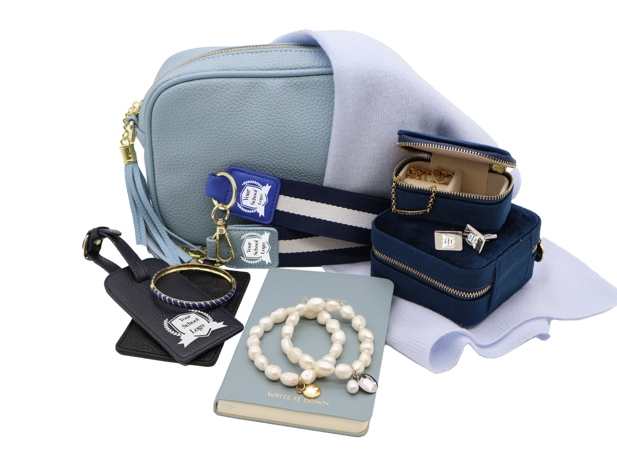 We have a beautiful selection of bags and clutches both leather and PU for you to make your own. Your school or club crest or logo can be embossed on to any of our clutches, purses or totes or bags and tassels can be created in complimentary colours.