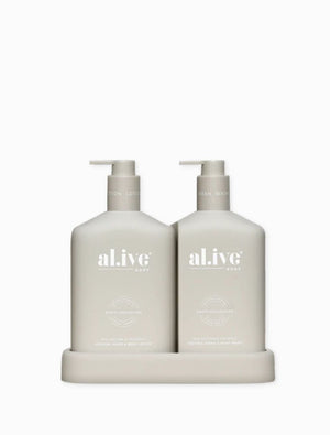 Immerse yourself in the soothing scents of the AL.IVE Sea cotton & Coconut Duo 500ml. This luxurious set includes a 500ml Hand & Body Wash and a 500ml Hand & Body Lotion, both crafted with a blend of naturally derived ingredients, essential oils, and native botanical extracts to nourish and hydrate your skin.