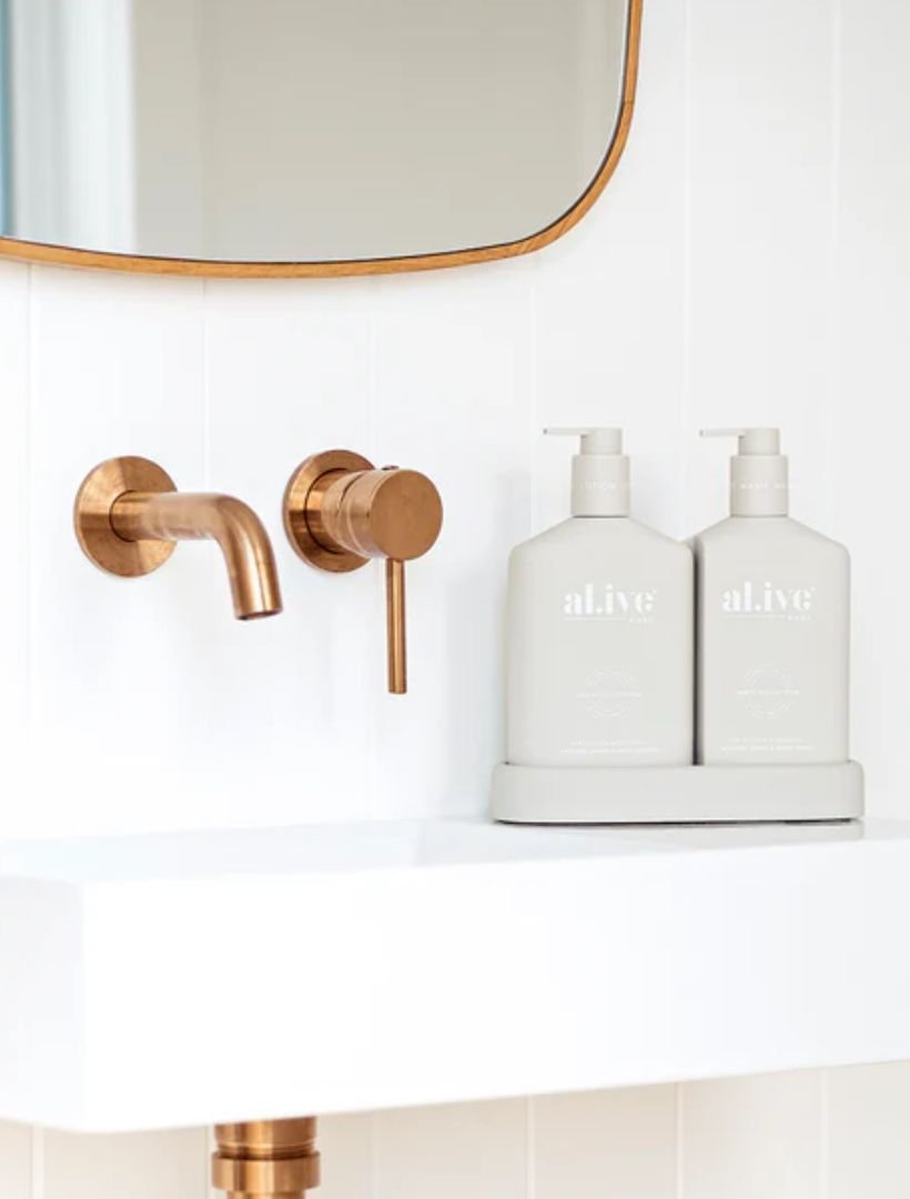 Formulated with Coconut, Cotton Seed Oil, and Aloe Vera, this duo cleanses, hydrates, and softens, leaving your skin smooth and delicately fragranced. The Hand & Body Wash gently cleanses, while the Lotion provides lasting hydration for a silky feel. Housed in a stylish tray, this set adds elegance to any space and features 100% recyclable HDPE plastic bottles and a durable ABS tray for long-lasting use.