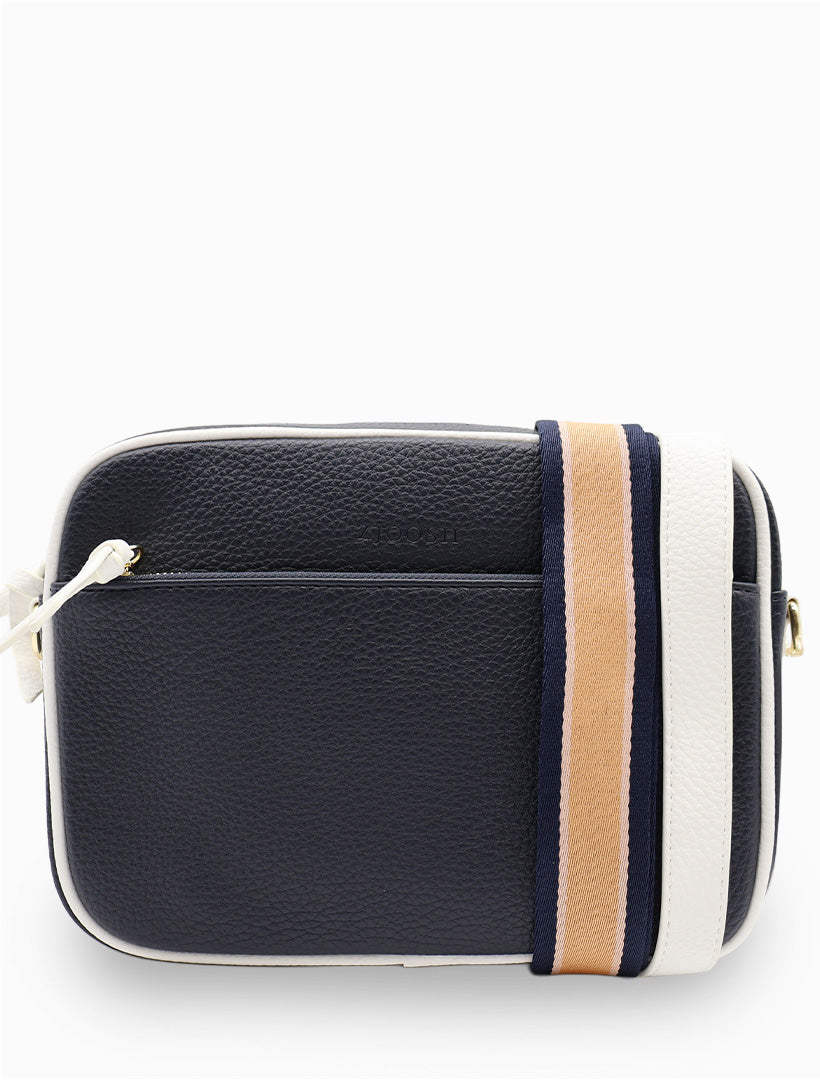 Meet your new everyday essential! Introducing the Bec Cross Body Bag Navy White – crafted from smooth vegan PU leather in a timeless navy and white combination. Modern and versatile, she’s been perfectly Zjoosh-ed with our signature webbing strap for a contemporary, stylish touch.