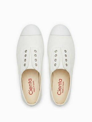 Step into classic comfort with the Cienta plimsole, beautifully made in Spain. Featuring a clean fabric upper, a hidden inner goring for easy slip-on wear, and a stylish rubber cap toe.