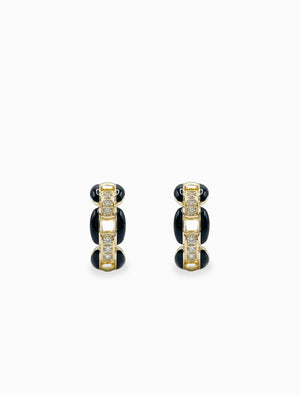 These Enamel and Crystal Hoops in a chic dark navy are perfect for adding a touch of understated elegance to any look. The deep navy enamel offers a sophisticated pop of color, beautifully complemented by sparkling crystals that catch the light.