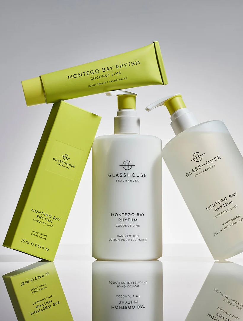 Introducing the Glasshouse Fragrances Montego Bay Rhythm Hand Wash. Capture the beaming soul of the Caribbean, where Coconut, Citrus and Vanilla embrace you as a local under the sun. Jamaican rhythms warm your heart and move your feet as smiles abound in this place where it's always summer.