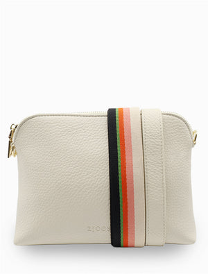 Our latest Hudson Cross Body Bag Ecru combines style and function with two removable straps: a classic PU strap with gold chain and a playful striped webbing strap. A versatile cream bag perfect for when you need to carry a little bit more than your everyday essentials. Do it with style in this Ecru cross body bag.