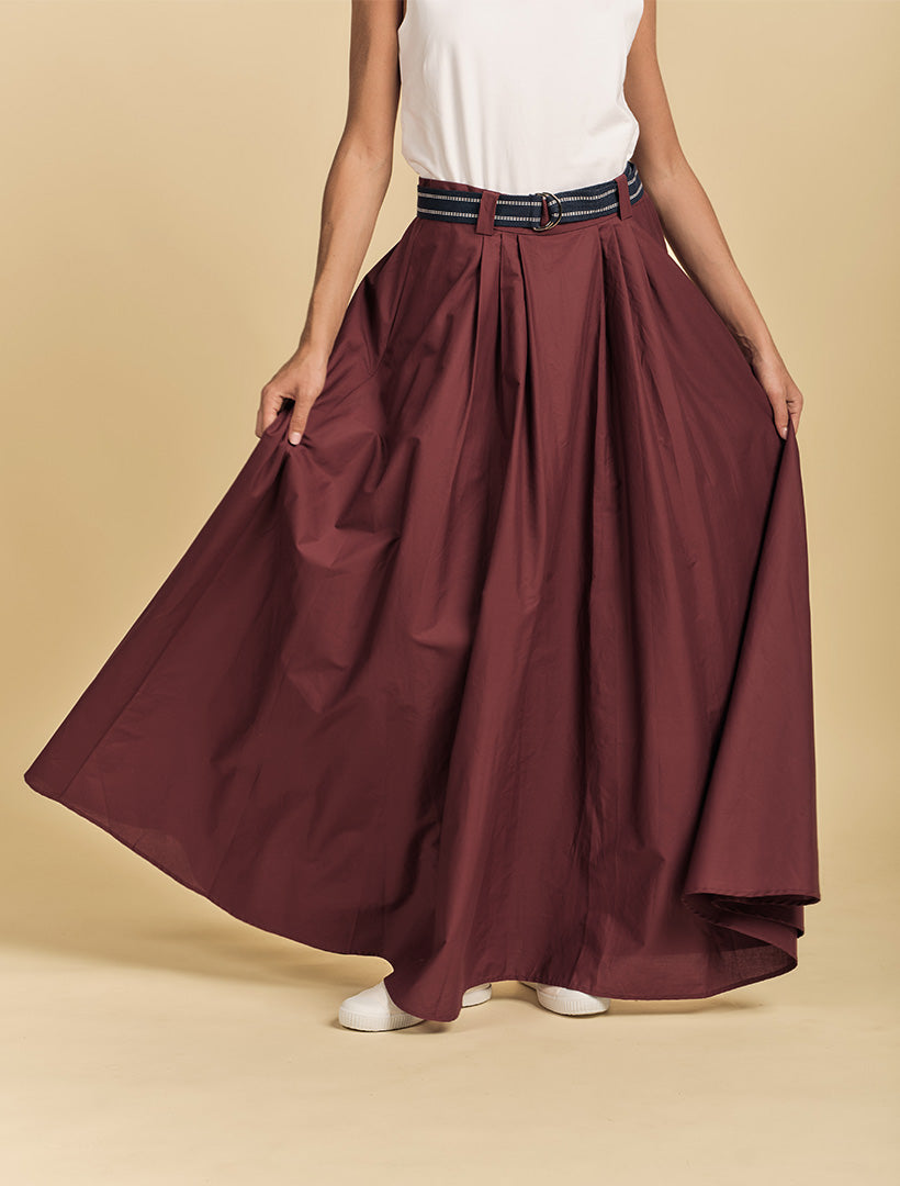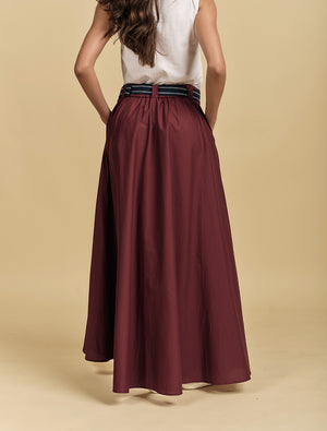 Elevate your everyday style with the Kara Cotton Maxi Skirt in Burgundy. Crafted from soft, breathable cotton, this skirt drapes beautifully for a relaxed yet polished silhouette.