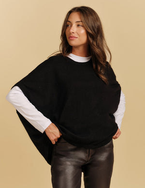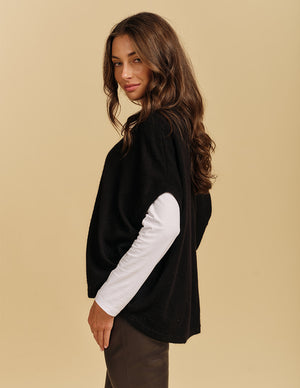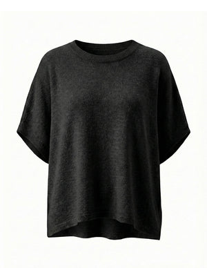 Designed as a versatile layering piece, this top works well over long-sleeve shirts or on its own. The wide, short sleeves and loose shape create a modern look that is easy to style. It is a practical and cozy staple that pairs perfectly with leather pants, jeans, or trousers.