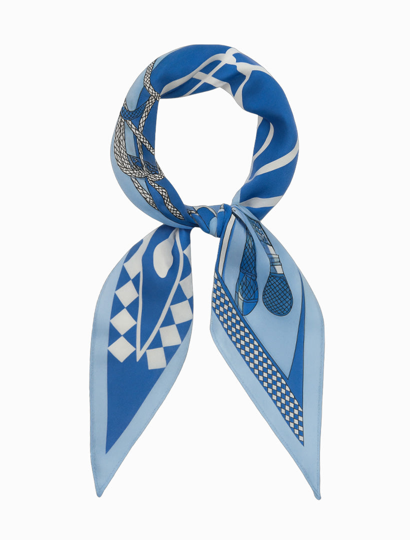 Perfect for warm-weather styling, this navy scarf can be worn around the neck, tied in your hair, or styled on your handbag for a polished finishing touch. Its smooth texture and subtle sheen make it an essential accessory for adding a hint of luxury to your everyday look.
