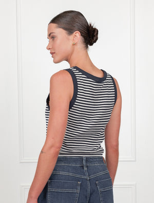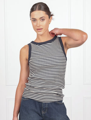 The Raven Stripe Tank Navy White is a fresh twist on a Zjoosh favourite. Crafted from a soft cotton blend rib, this striped tank offers the perfect amount of stretch for a flattering slim fit. The classic navy and white stripe adds a crisp, nautical-inspired touch that elevates even the simplest outfit.