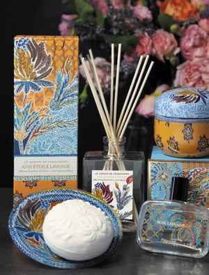The Rose Lavande Soap and Dish Set is lovingly crafted in Grasse, France, the heart of traditional French perfumery. With a velvety blend of floral rose and woody lavender, this beautifully perfumed soap evokes a serene and elegant atmosphere, bringing a moment of calm to your daily cleansing ritual.