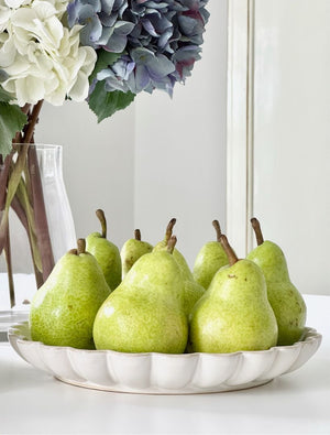The Scallop Platter White Medium is a versatile serving piece that adds charm to any table setting. Featuring a refined scalloped edge, this medium-sized white platter is perfect for serving appetisers and desserts or showcasing decorative items.