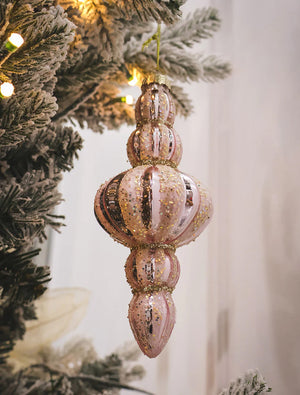The Sugar Pink Finial Bauble shimmers with soft, rosy elegance, adding a touch of sweetness and sophistication to your festive home. Its delicate pink hue and graceful shape make it a standout ornament, perfect for creating a warm, joyful atmosphere this Christmas.