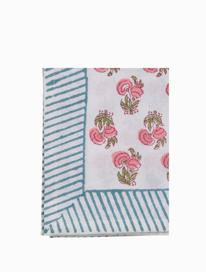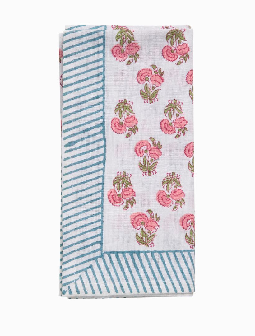 These beautiful blue and pink floral napkins are crafted from 100% cotton and represent the perfect blend of casually refined style, making them ideal for both laid-back gatherings and formal dinners. Over time, they will soften, becoming a cherished part of your table setting and a reminder of good times shared around the table.