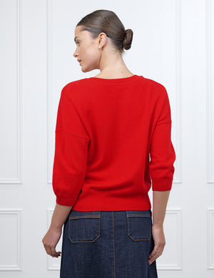 Dress it up or down, this red cashmere tee is a versatile addition to your wardrobe. It's super soft and breathable, making it ideal for any season. Enjoy the simple luxury and easy style of this beautiful knit tee.