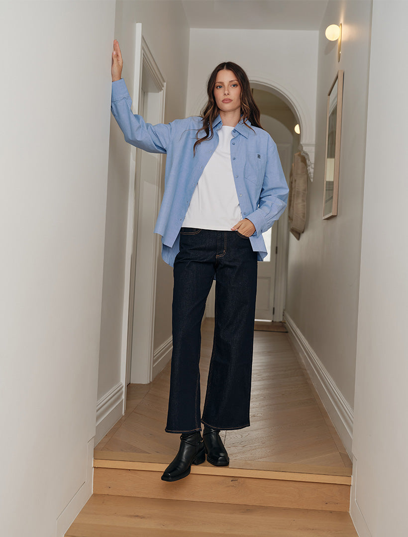 Crafted from premium 100% cotton, the Zjoosh Boyfriend Shirt offers a crisp, breathable feel with an effortless oversized fit. It features a classic pointed collar, dropped shoulders, and a functional chest pocket with subtle branding for a modern, relaxed silhouette.